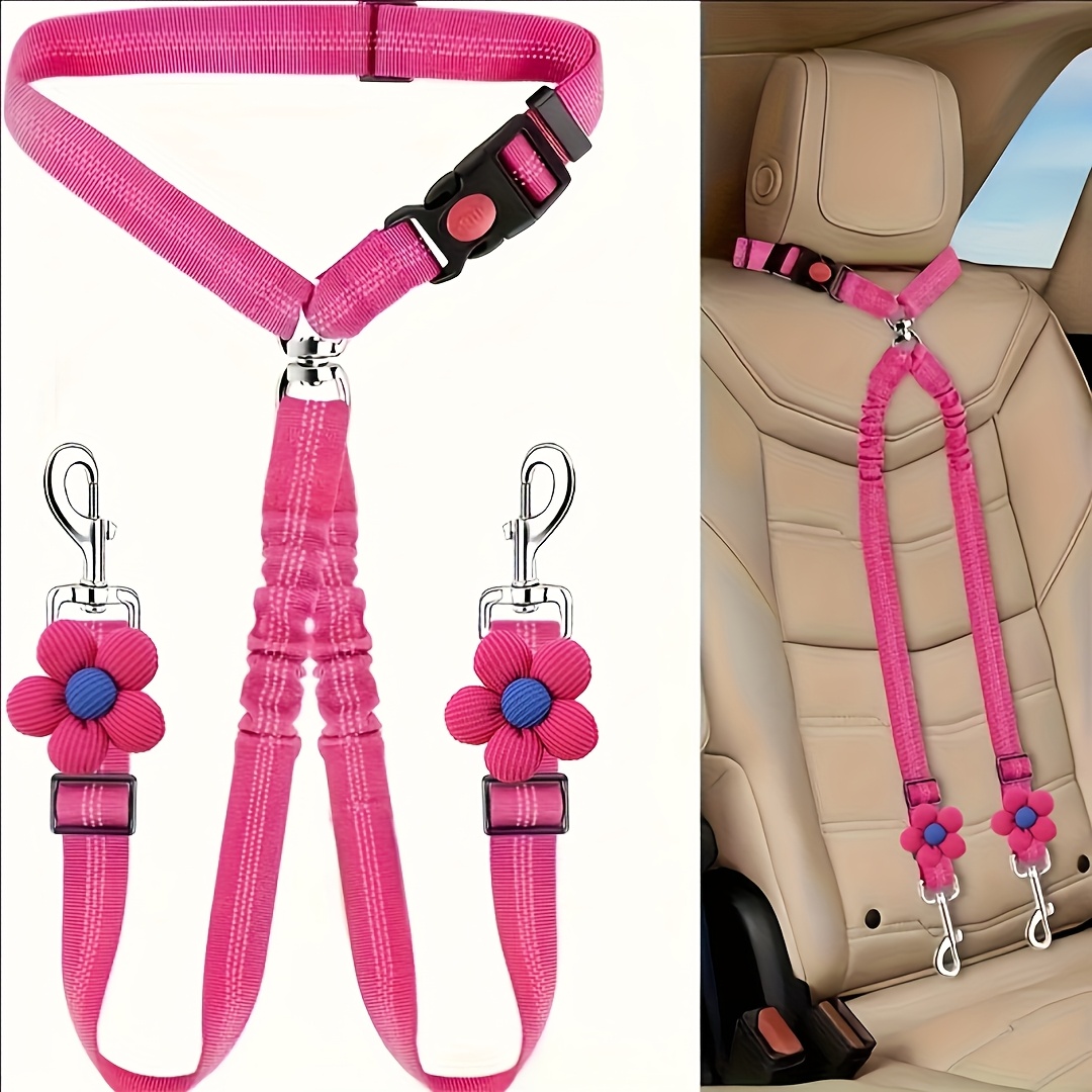 TEMU 더블 독 시트 벨트 - 2마리 강아지용 헤비듀티 조절 가능 번지 펫 카 리스트레인 시스템, 헤드레스트 하네스, 엉킴 방지 리드 & 스플리터 커넥터 포함, SUV, 자동차 여행용 차량 안전 벨트 (앞/뒷좌석 호환)