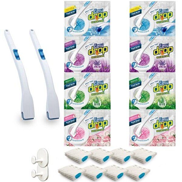 이지드롭 변기크리너 블루핸들2개 + 리필브러쉬 4팩 (48개입) 일회용 변기청소 청소도구