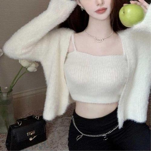 [오너클랜]인기상품 니트소재 와이드넥 슬리브리스 숏기장 이지니트집업 매치 2피스 [WFLEMPQ_260415]