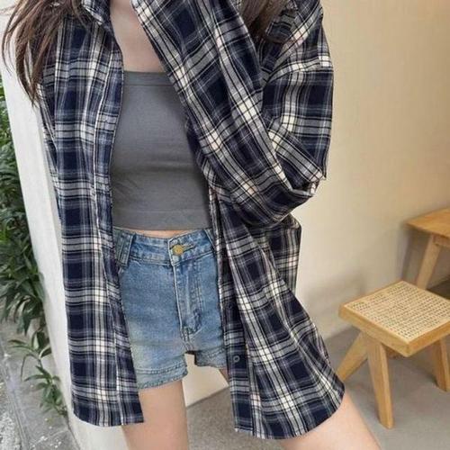 모드베이스 이지 체크 셔츠 긴팔 남방 탑