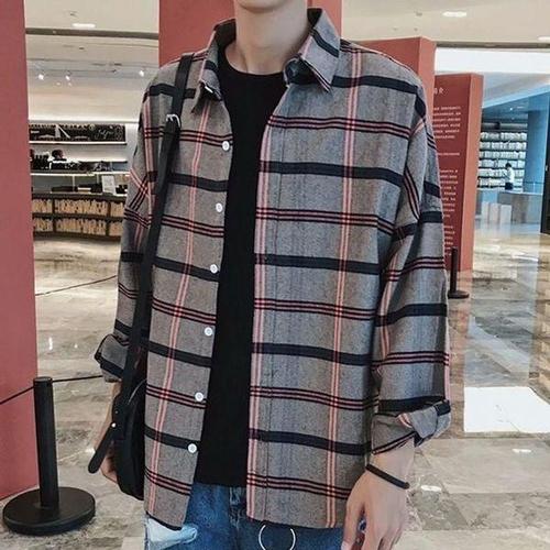 [에이치플러스몰]오버사이즈 이지 폴 체크셔츠캐주얼셔츠