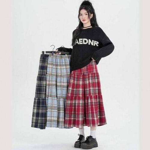 체크패턴 이지 캉캉 플레어라인고무줄 롱스커트 일상템 롱스커트 WFLF1XE