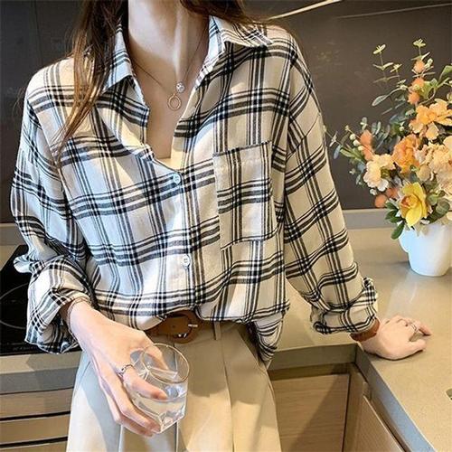 [오너클랜]인기상품 이지 2가지색 베이직핏 체크셔츠 우먼와이셔츠 [WFLEW6X_260418]