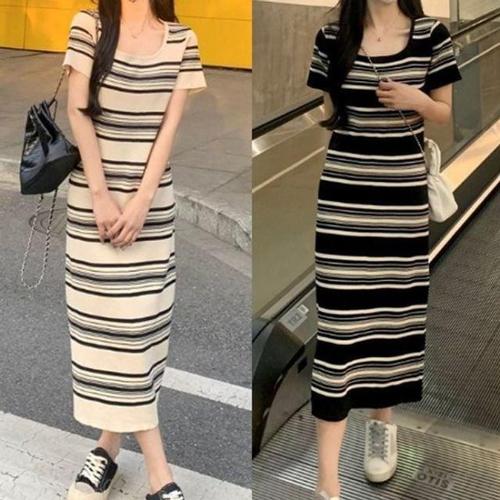 [오너클랜]인기상품 우먼 사각넥 줄무늬롱기장 원피스룩 이지 [WFLF3TB_260418]