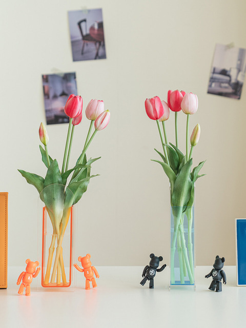 [노바리빙] 아크릴 화병 투명 프리미엄 꽃 오브제 인테리어 이케바나 미니 플라워 꽃병 블루