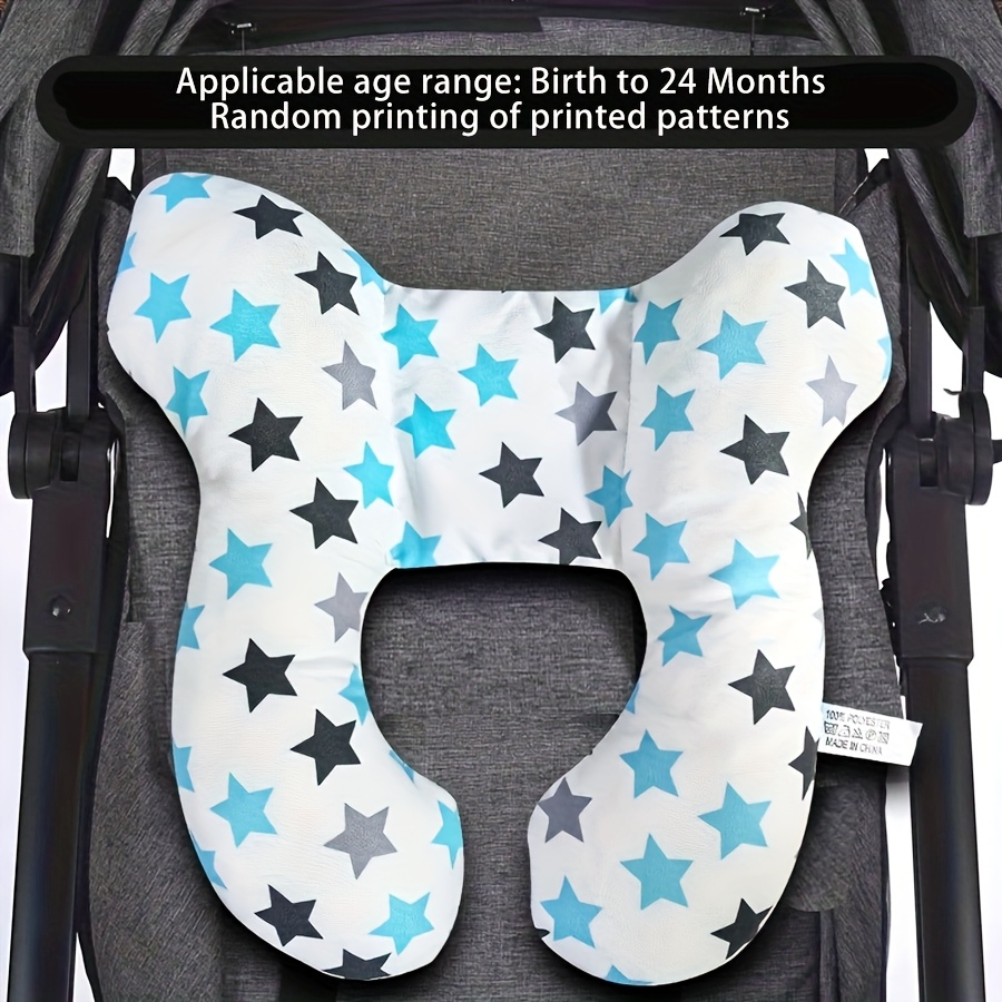 TEMU 신생아 및 유아용 휴대용 여행 베이비 베개 1개 - 별무늬가 있는 부드러운 머리와 목 지지대, 가벼운 디자인, 세탁기 사용 가능, 블랙/화이트/그레이, 아기 카시트 및 유모차 안전을 위한 완벽한 이스터 선물, 유모차 액세서리, 재미있는 디자인, 내구성 있는 원단|휴대용유모차