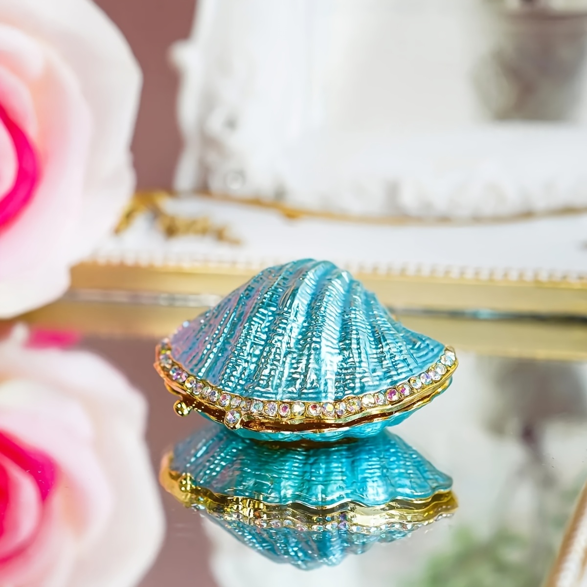TEMU 핸드페인팅 쉘 모양 보석함, 귀걸이 목걸이 정리함, 에나멜 핸드페인팅 블루 정리용 공예품 장식, 보석함