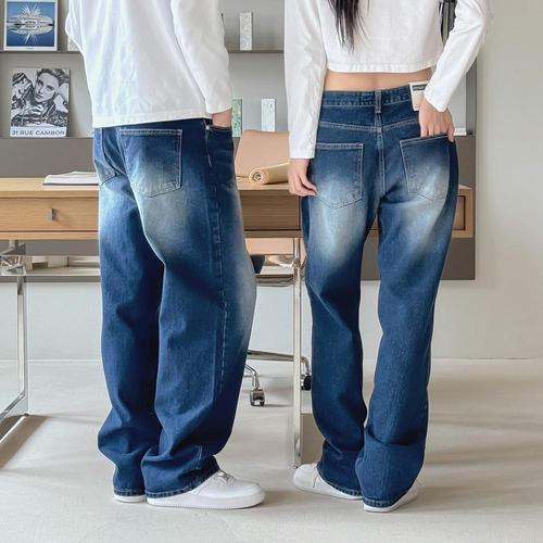 남여공용 인디고 세미 와이드 워싱 데님 팬츠 UJ-JEA-8072