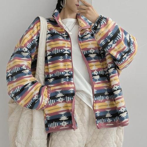 [라일리] Rly 인디언패턴 기모 후드 집업 점퍼 (국내생산)
