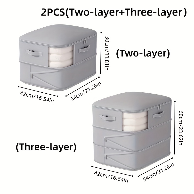 TEMU 2개 묶음 대용량 압축 수납 백 - 공간 절약형 접이식 옷장 정리함, 지퍼 잠금, 튼튼한 플라스틱 구조 (옷, 이불, 침대 밑 수납, 침실, 기숙사, 이사용), 다용도 직사각형 디자인, 옷 수납정리함, 고정 뚜껑|접이식침대|간이침대