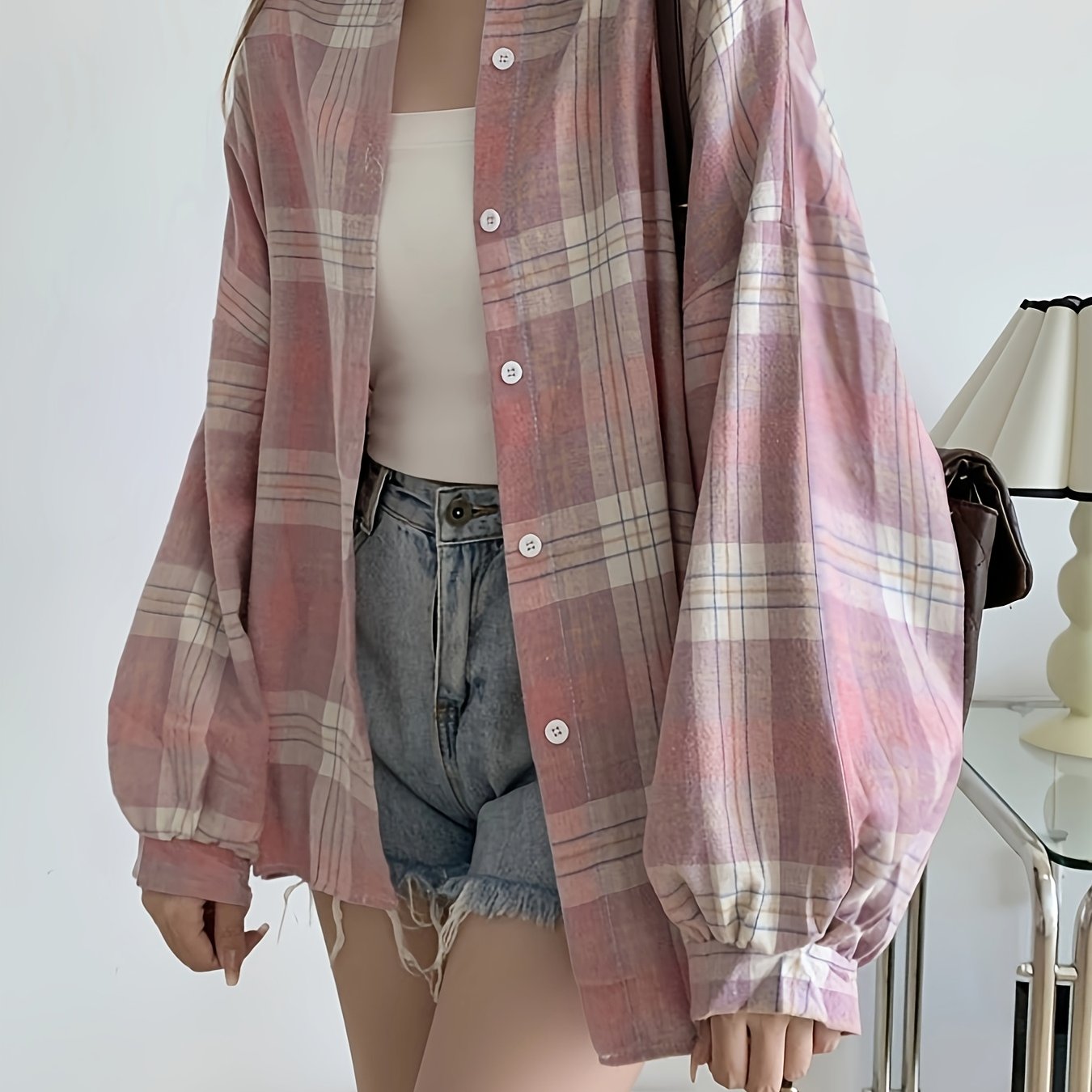 TEMU 핑크 체크 퍼피 슬리브 재킷 - 창의적인 의상