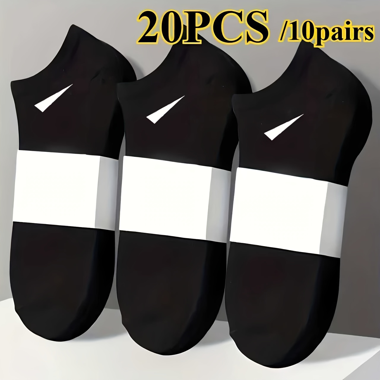 TEMU 통기성이 뛰어난 남성 양말 20개/10개 - 편안한 폴리에스터와 스판덱스 혼방 소재, 단색 디자인, 가벼운 니트, 일상 캐주얼 착용에 적합 | 스타일 | 내구성 있는 원단, 부드러운 질감, 활기찬 라이프, 다용도 스포츠 캐주얼 양말, 귀여운 양말