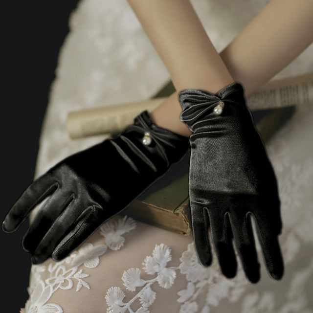 웨딩 공단 레이스 주름 장갑 블랙 (결혼식 장갑,셀프웨딩,웨딩소품)