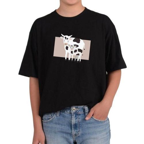 [에이치플러스몰]길단 반팔 USA핏 젖소 엄마소아기소 대관령젖소 우유 젖소농장그림 다양한색상 전사이즈