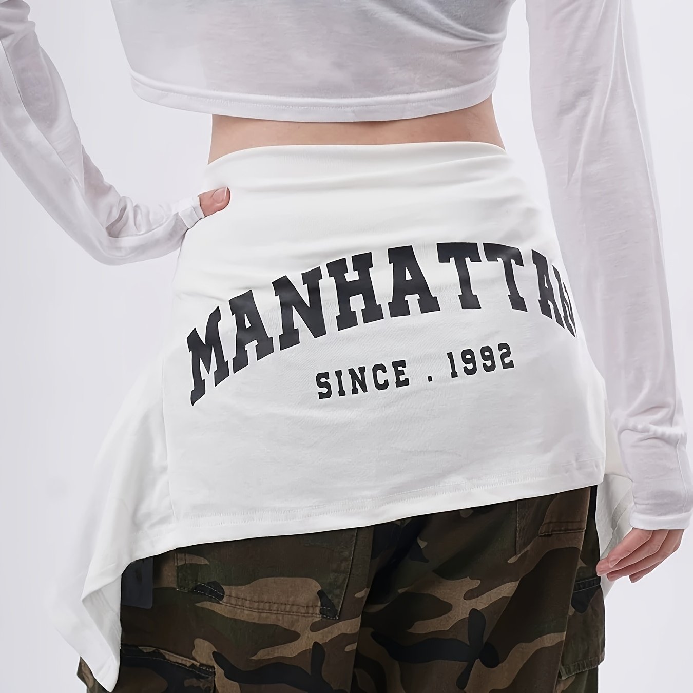 TEMU 일본 및 한국 스타일 레터 프린트 힙합 레이어링 스타일 재즈 스트리트 댄스 트렌디한 허리에 맞는 패셔너블한 활용도 높은 슬림핏 Y2K 핫 스커트, 봄과 가을용