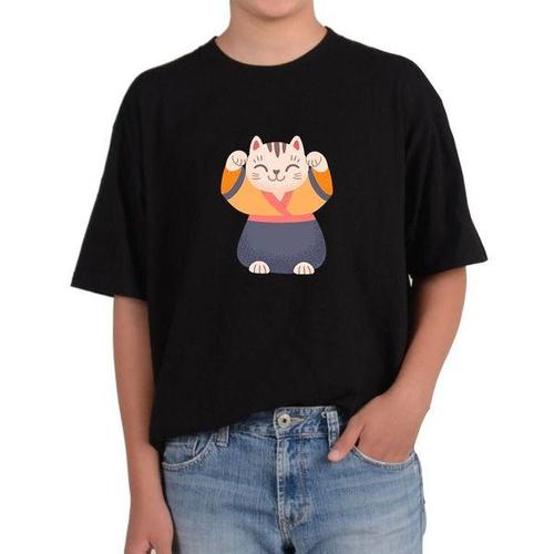[에이치플러스몰]반팔라운드 일본고양이 얼굴 CAT 마네키네코 가면 미소 그림 모든사이즈