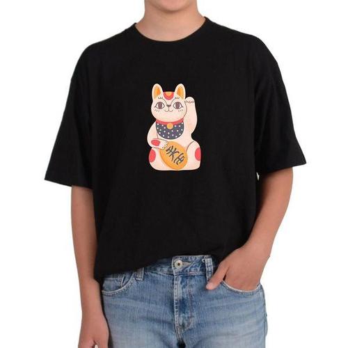 [에이치플러스몰]오바핏반팔티 일본 고양이 인형 소품 마네키네코 복고양이 그림 모든사이즈