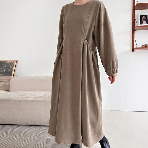 [옷자락]여성 셔링 포켓 얼리윈터 퍼프 임부복 가을 롱원피스