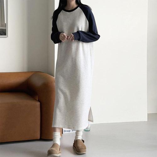 [문에이블]문에이블 여자 여성 겨울 루즈핏 빅사이즈 임산부 기모 배색 나그랑 데일리 긴팔 롱 원피스