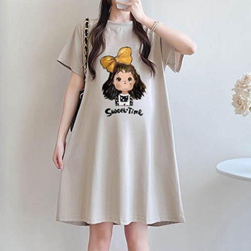 [모노무드]모노무드 NDCNW-5884 여름 반팔 캐주얼한 원피스 임산부 박스 롱티 홈웨어