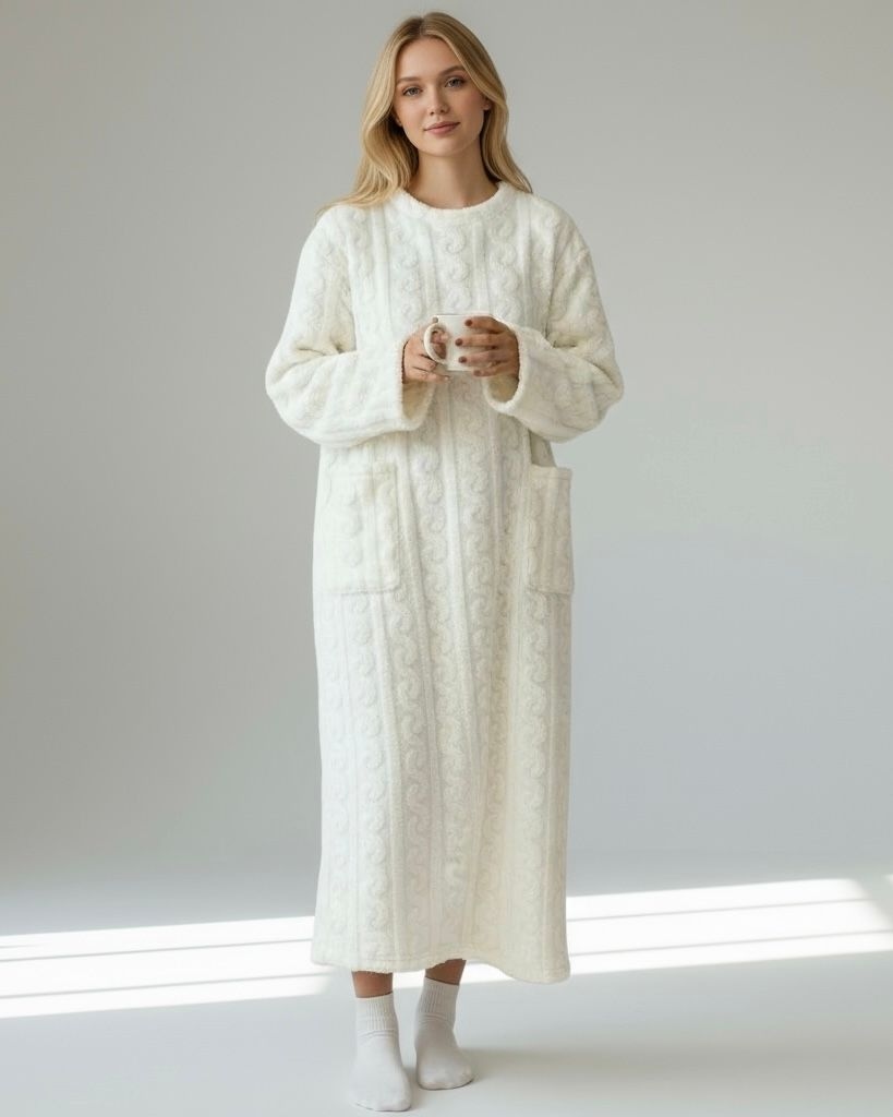 따뜻한 꽈배기 극세사 원피스 잠옷 여성 겨울 극세사 임산부 실내복 홈웨어 파자마 수면