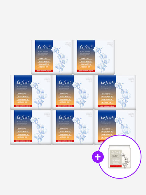 [르프레시] 유기농 100% 순면커버 입는오버나이트 8P x 8팩 + 팬티라이너 1팩 증정 / 슬림핏 팬티형생리대 입는생리대