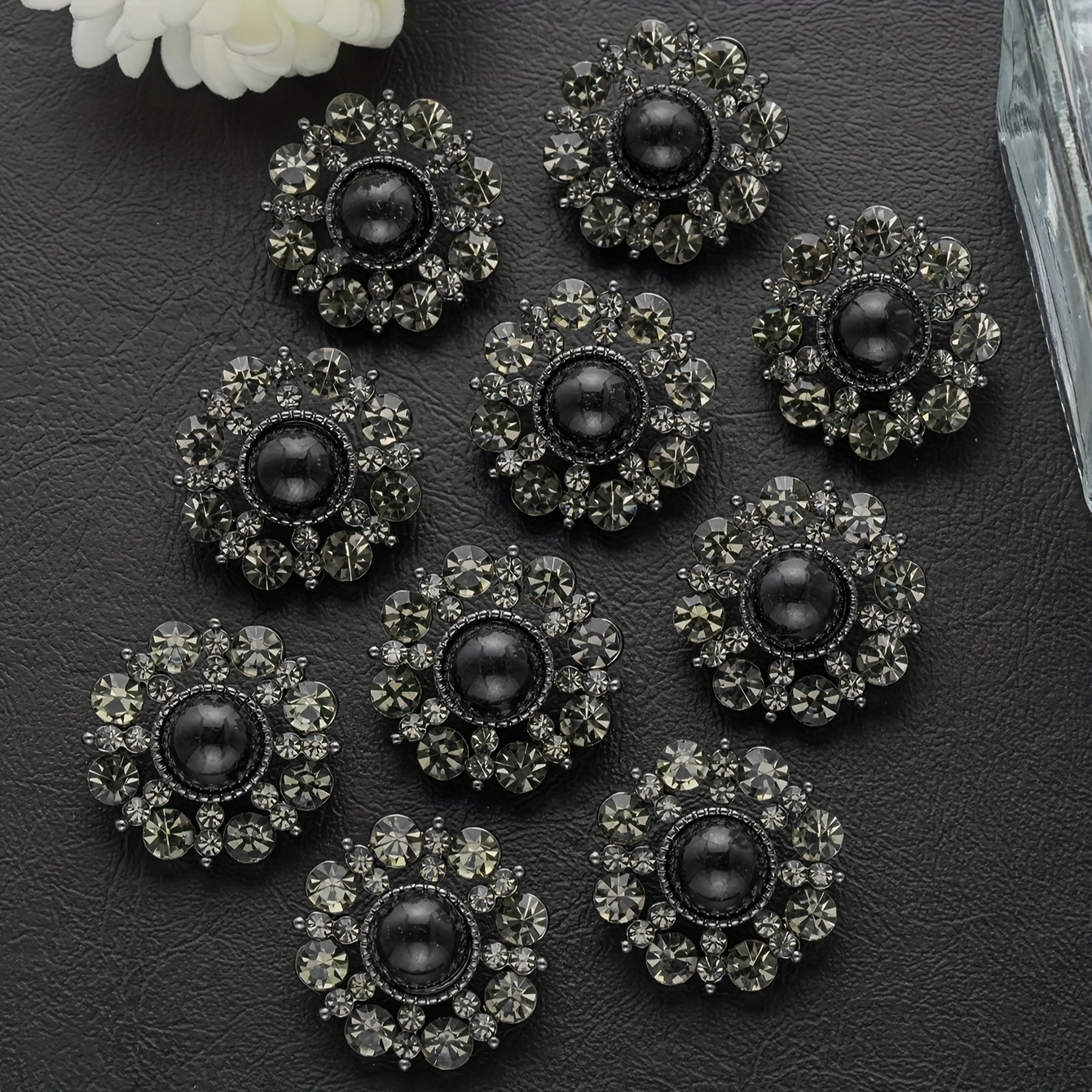 TEMU 8팩 홀로우 아웃 라인스톤 & 진주 장식 금속 버튼, 여성용 웨딩 드레스, 드레스 셔츠, 스웨터, 코트, DIY 공예, 보석 선물 상자, 수선 액세서리 - 블랙/골든/실버 그레이