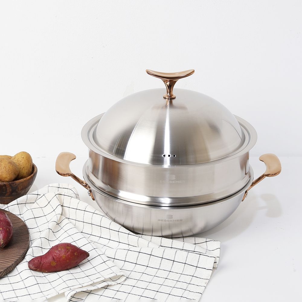 [어썸테이블x베세머] 오리진 28cm 양수 웍/스티머 통5중 316 스테인레스 (인덕션O)