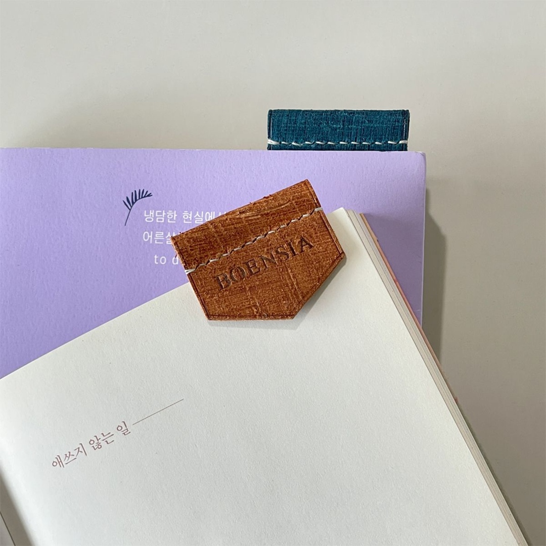 1+1 이태리 그리드 가죽 이니셜 각인 수제 책갈피 북마크 북클립 ver4