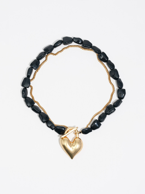 [빔바이롤라] [25FW] 빔바이롤라 매트골드 하트 자물쇠 더블 체인 목걸이 B256AIU010DRF