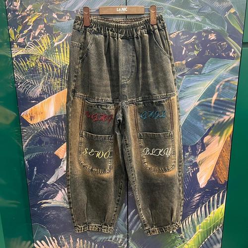 [셀러허브_여성트랜드패션]Rly 레트로 여자 청바지 여름 자수 배기 데님 팬츠