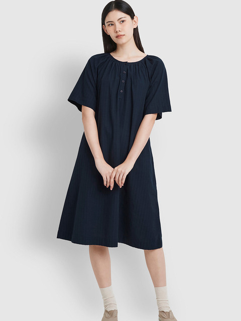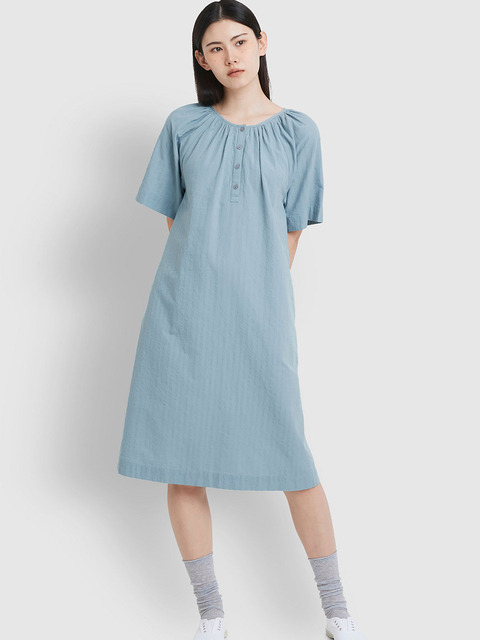 [자주 라이프웨어] [JAJU/자주] 여 레이온 코튼 시어서커 반팔 파자마 원피스_라이트 네이비