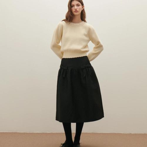[샤틴]리본장식 패턴쟈카드 A라인 스커트S254M351A