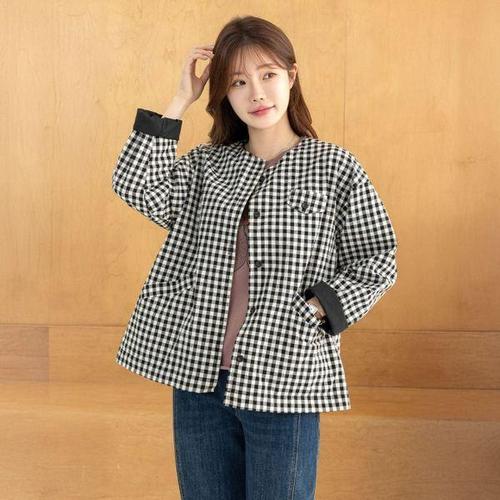 [디얼마미]러스 잔체크 라운드 자켓 /마담 미시 중년 여성 빅사이즈 40대 50대