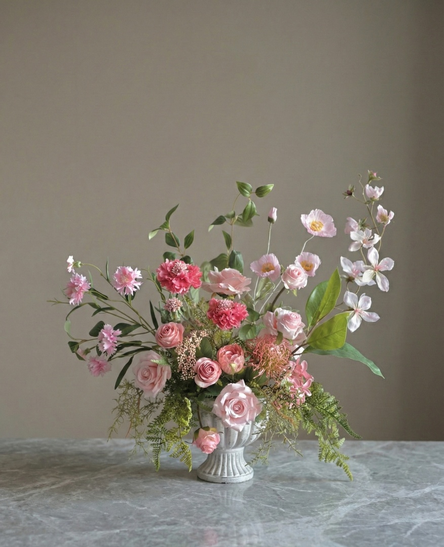 화사한 핑크 장미 핑쿠션 조화 꽃다발 세트 센터피스 파티 테이블데코