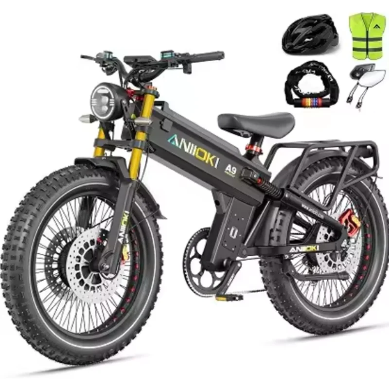 대세일 ANIIOKI 6000W A9 프로 맥스 듀얼 모터 전기 자전거 60V 70/80ah 배터리 26 * 4.8인치 팻 타이어 더트 바이크