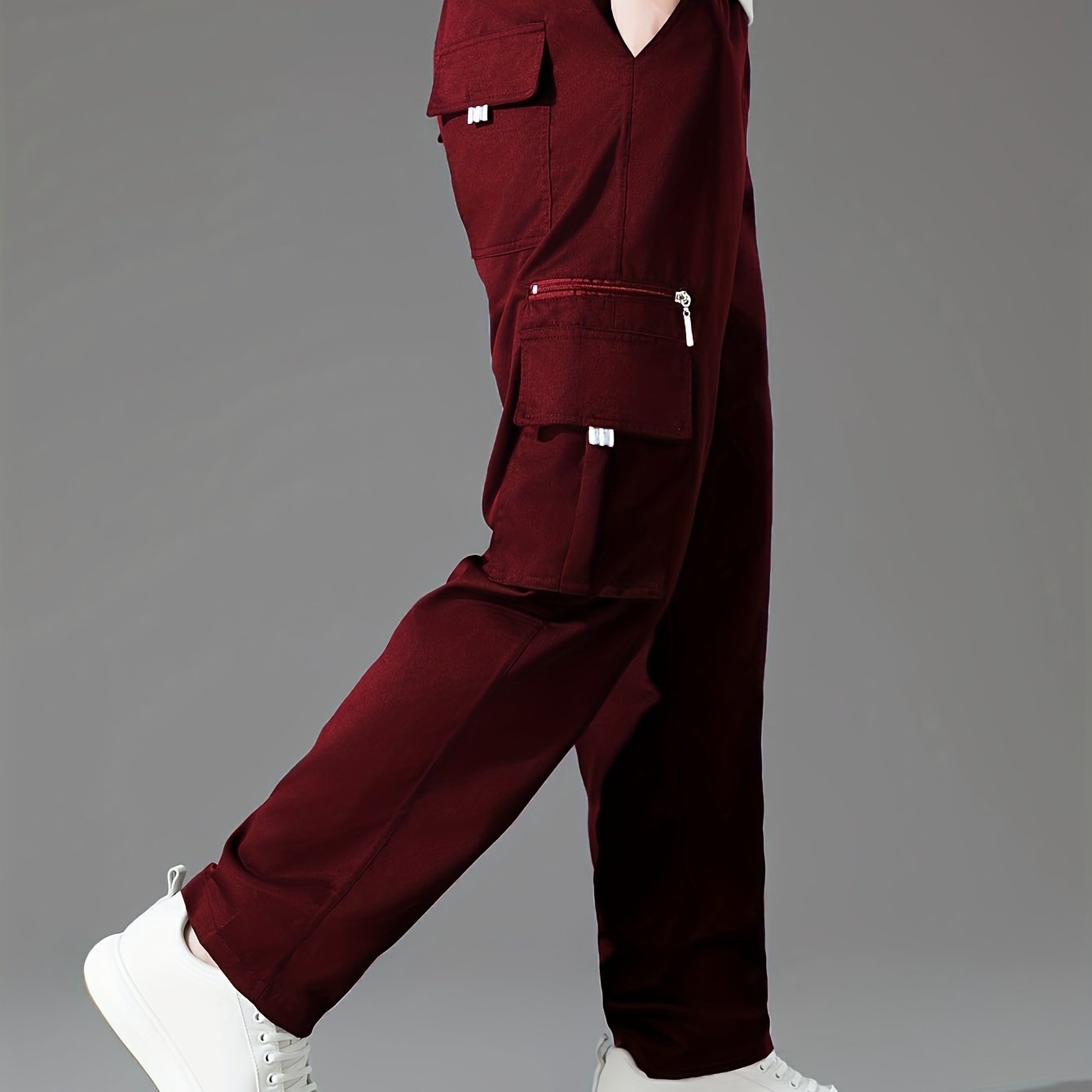 TEMU 남성용 경량 캐주얼 스포츠 팬츠, 멀티포켓 디자인 - 루즈핏 하이킹 & 조깅 작업복, 단색 사계절 아웃도어 바지, 세탁기 사용 가능, 내구성 있는 카고 소재