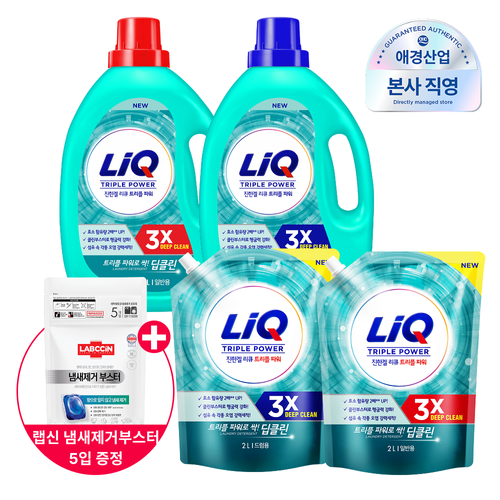 리큐 진한겔 딥클린(3X) 2L 리필 4개(일반/드럼) + 800ml 섬유항균제 증정