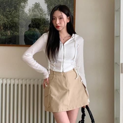 [옷자락]여자 절개 골지 스트랩 슬림 후드집업
