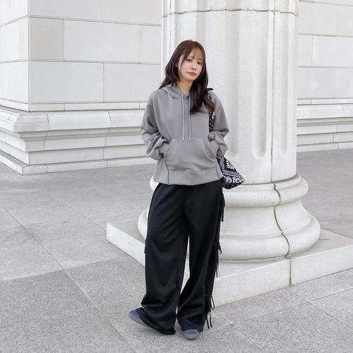 [옷자락]여자 절개 디테일 포켓 후드 밴딩 팬츠 세트