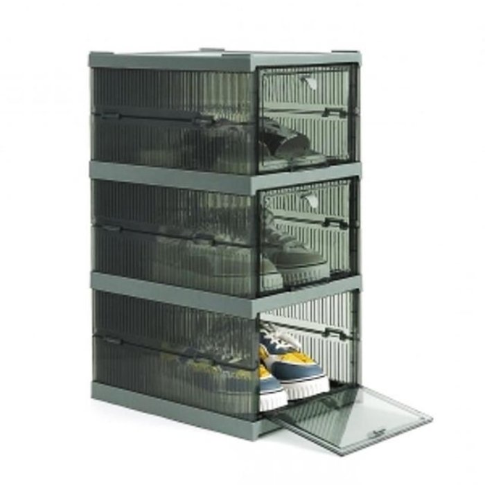 엄지척 간편 접이식 3단 신발 정리함 그린 진열장