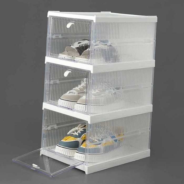 엄지척 3단 간편 신발정리함 화이트 접이식 슈박스 DIY신발장