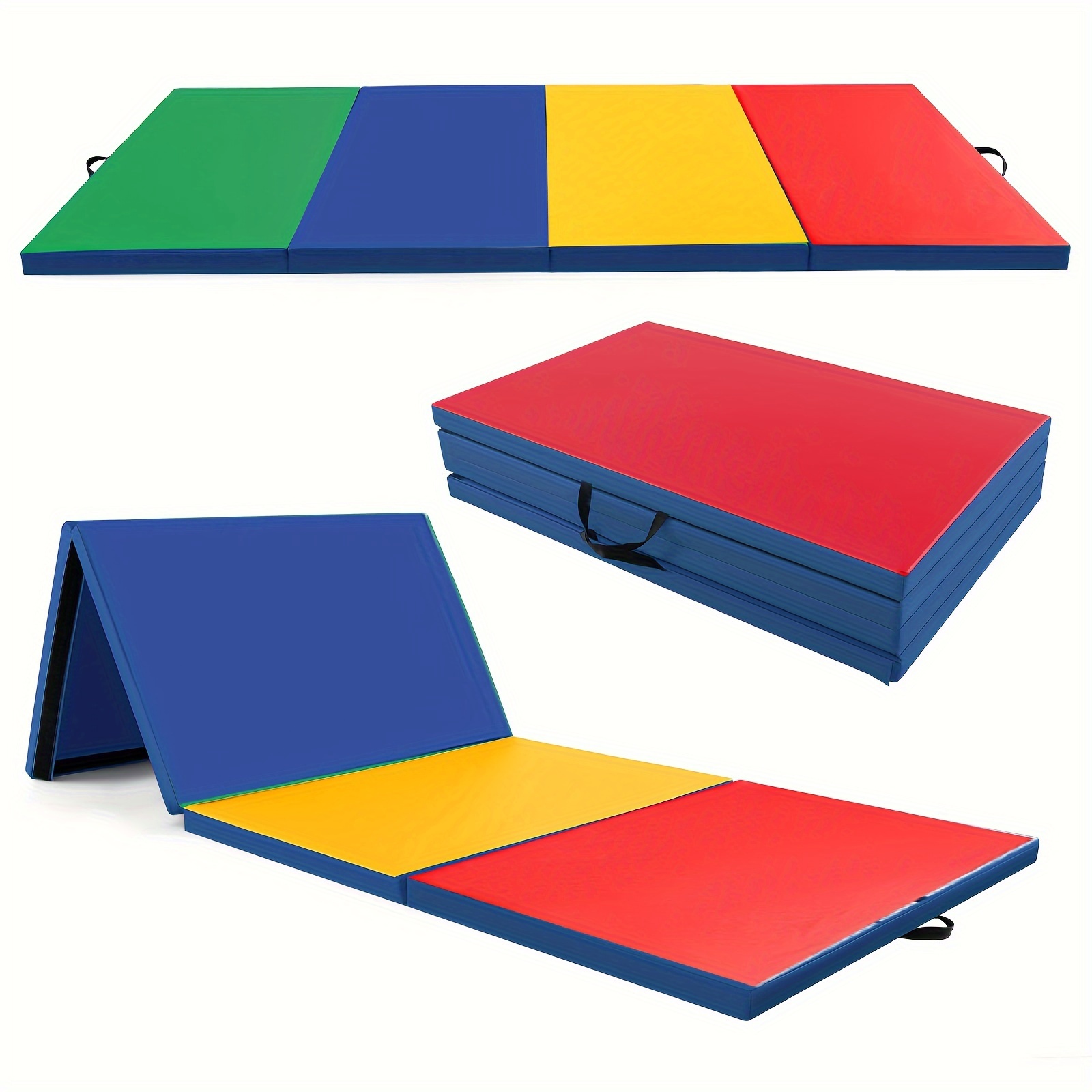 TEMU 접이식 피트니스 매트, 짐 및 요가용 4단 패드, 미끄럼 방지 휴대용 점핑 매트, 홈 워크아웃, 헬스장 장비, 요가 매트, 휴대용 헬스장 매트, 컴팩트 헬스장 매트에 적합