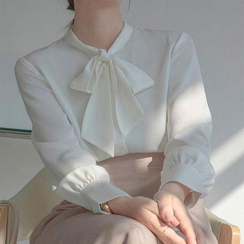[셀러허브_여성트랜드패션]여자 오피스룩 단아한 블라우스 셔츠 리본 정장 새틴
