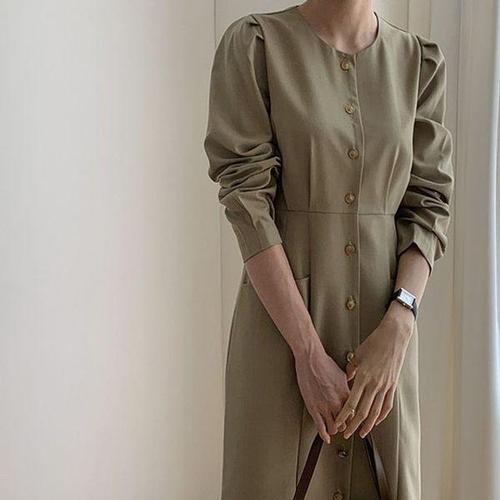 POMTOR 여성 긴팔 원피스 고품질 오피스룩 미디원피스 정장 하객 셔츠원피스