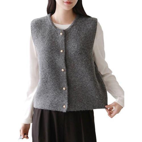 [제니유]로로 여성용 금장 단추 니트 조끼 가디건 베스트