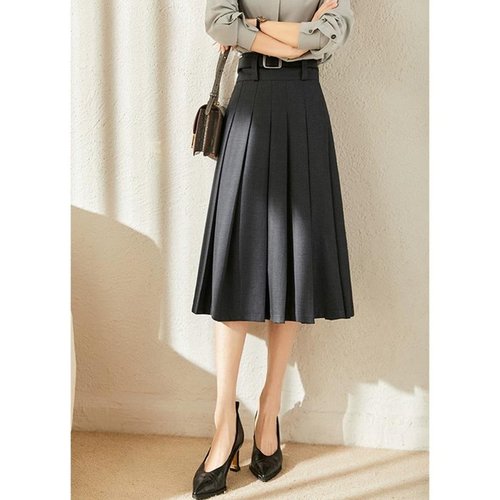 제로투올샵2 / 여성 하이웨이스트 슬림핏 벨트 롱 스커트 그레이 L
