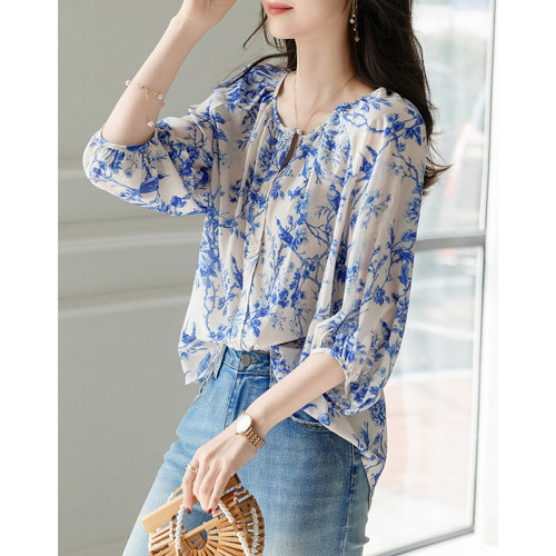 제로투올샵2 / 여름 감성 블루 프린트 여름블라우스 티블라우스 블루 S