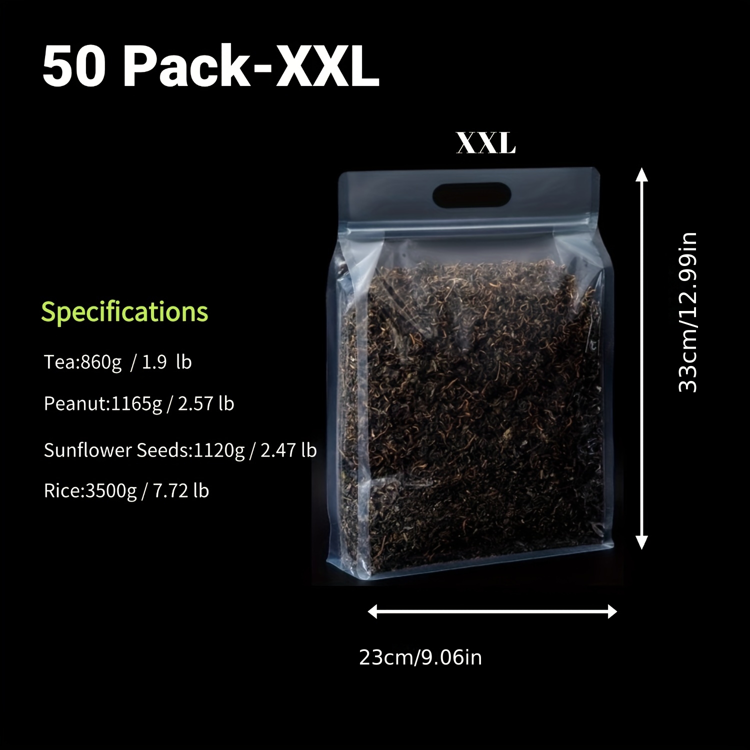TEMU 50개입 스탠드업 지퍼백 - 헤비듀티 투명 핸들 파우치 (차, 과자, 쌀, 견과류, 펫푸드용). 냉동고 안전 밀폐 지퍼, 주방/크리스마스 보관용 컨테이너 세트|냉동고|파우치|트라이탄밀폐용기