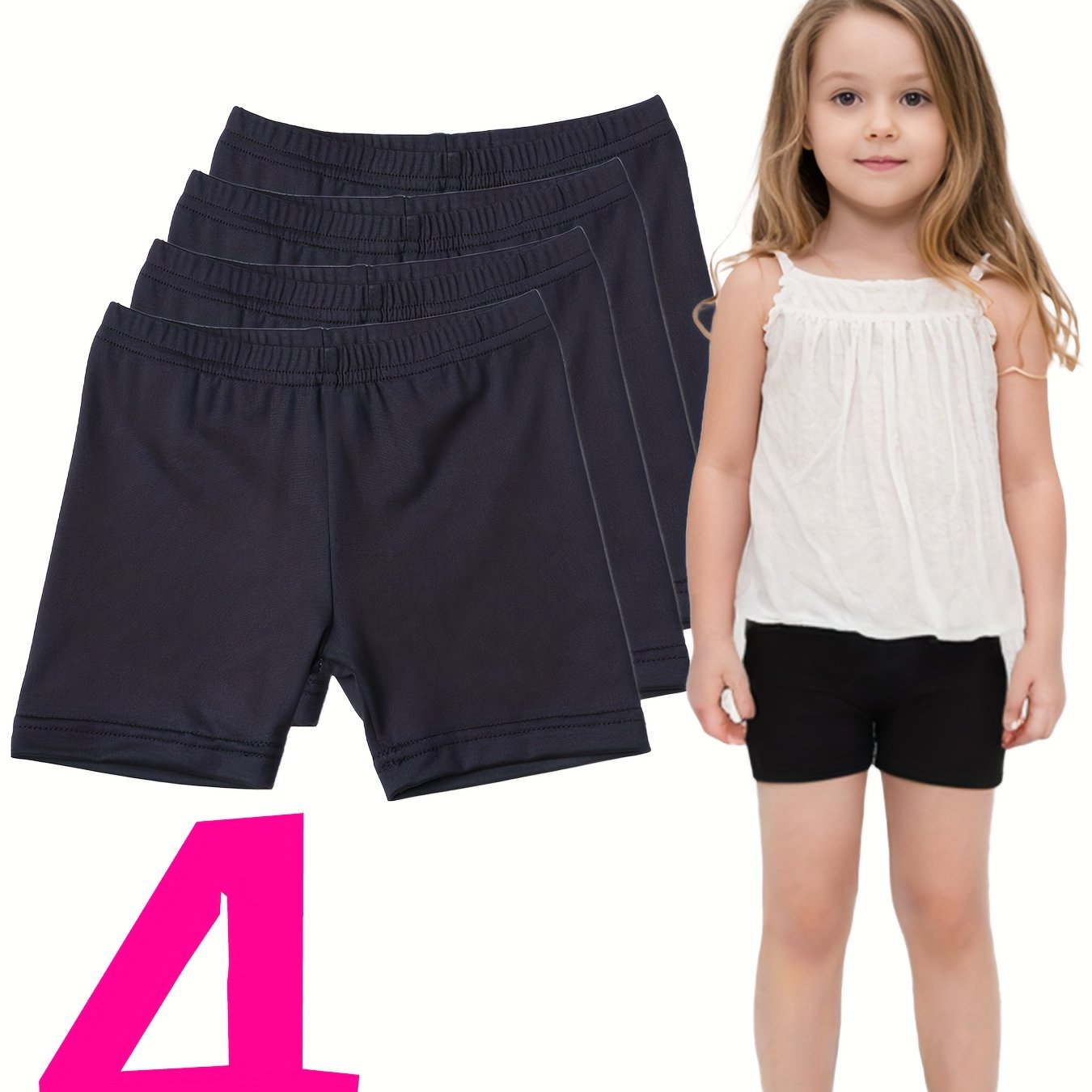 TEMU 4팩 여아용 순수 컬러 다용도 캐주얼 슬림 레깅스, 야외 활동에 완벽